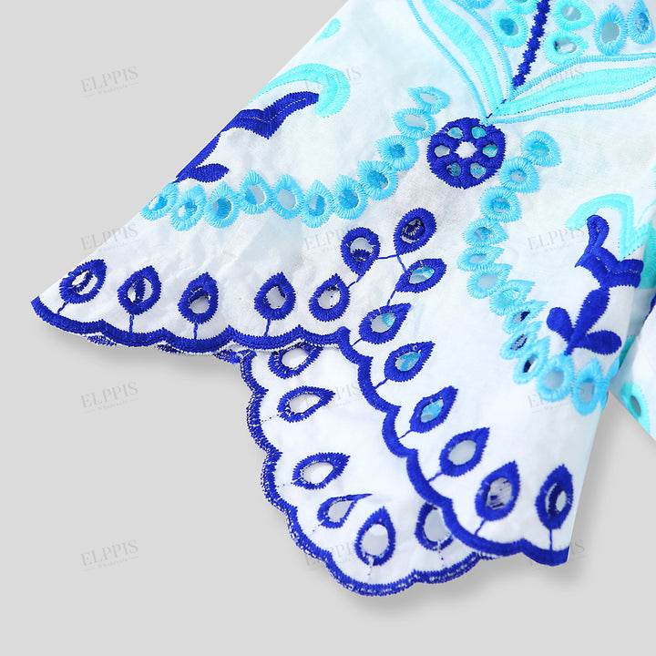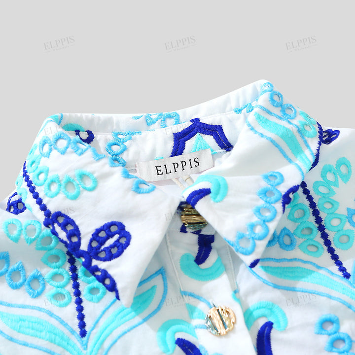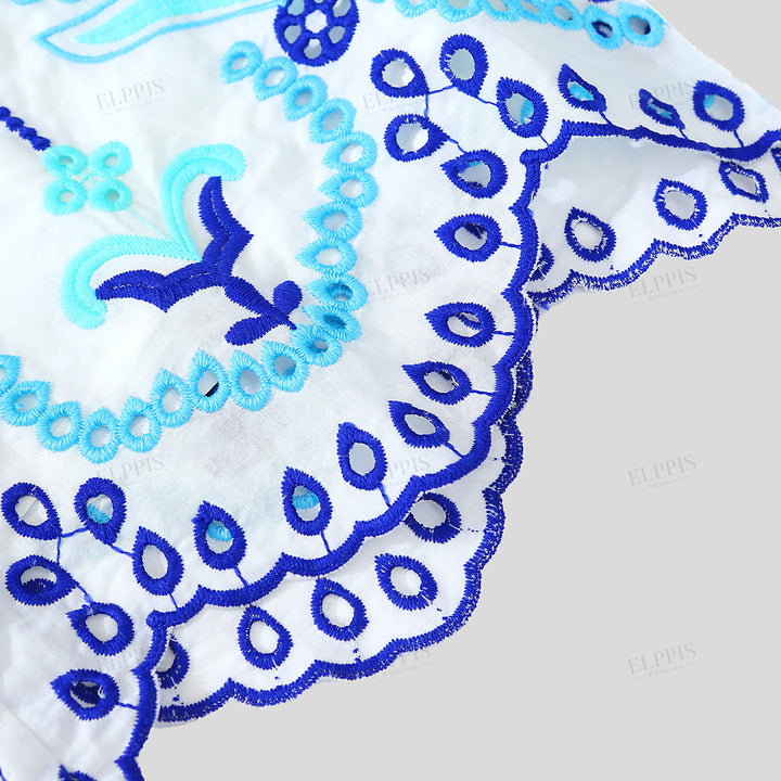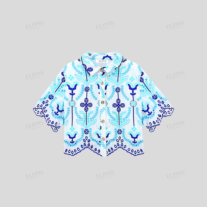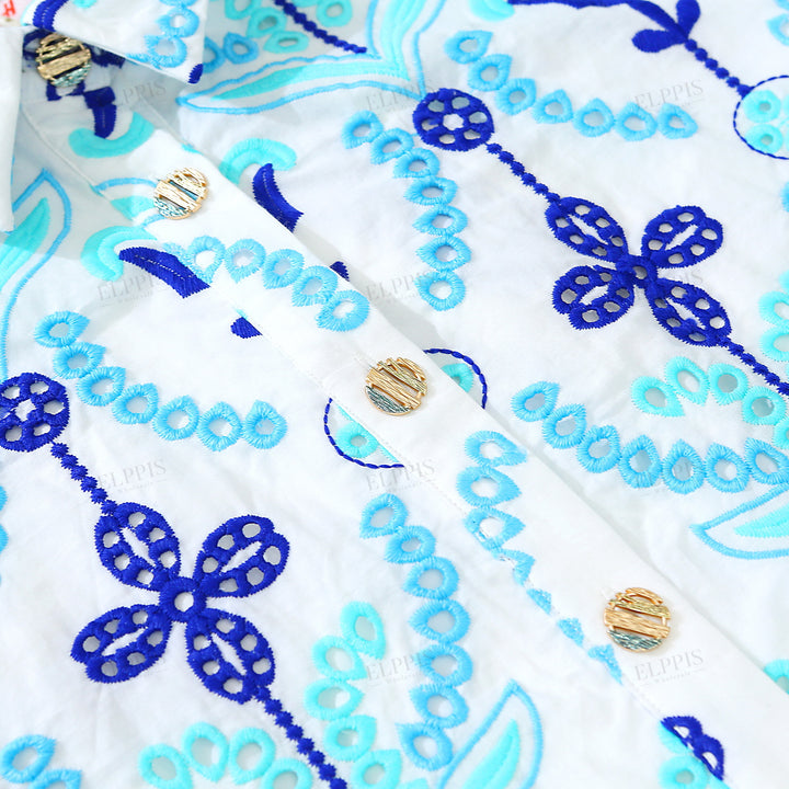 Straight H-Line Cotton Vacation Lace Color-Blocked Shirt
