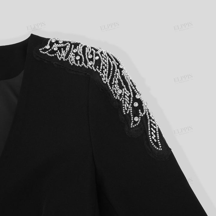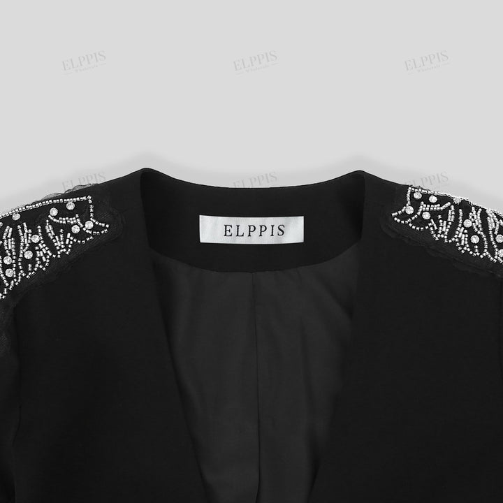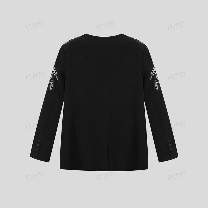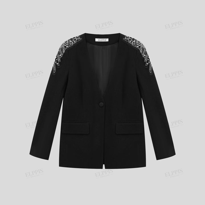Classic V-neck H-line patchwork pipe sequin embroidered blazer