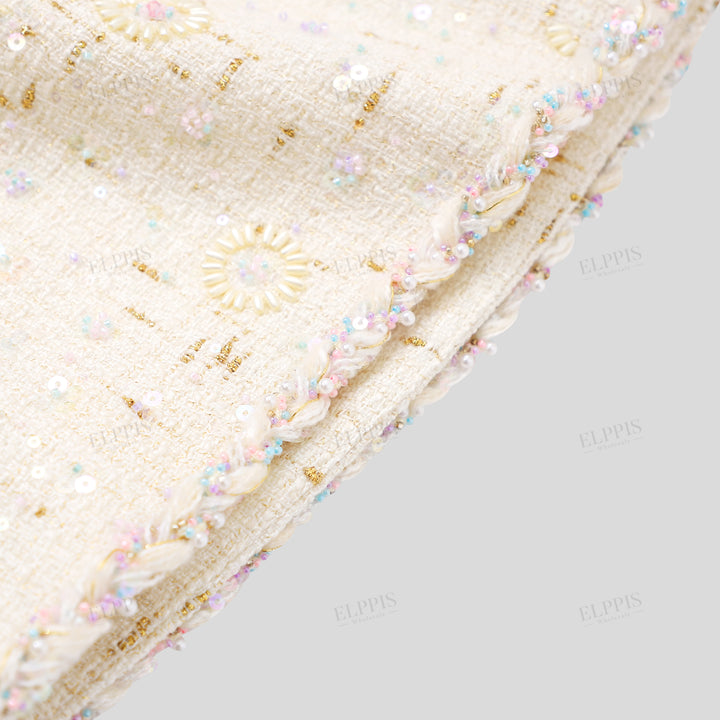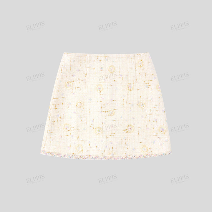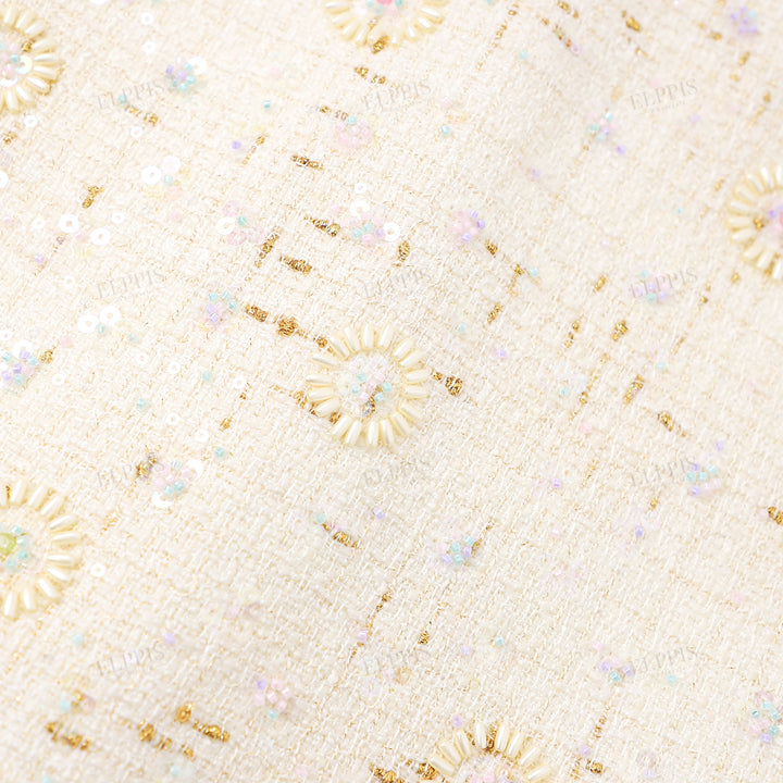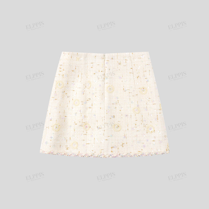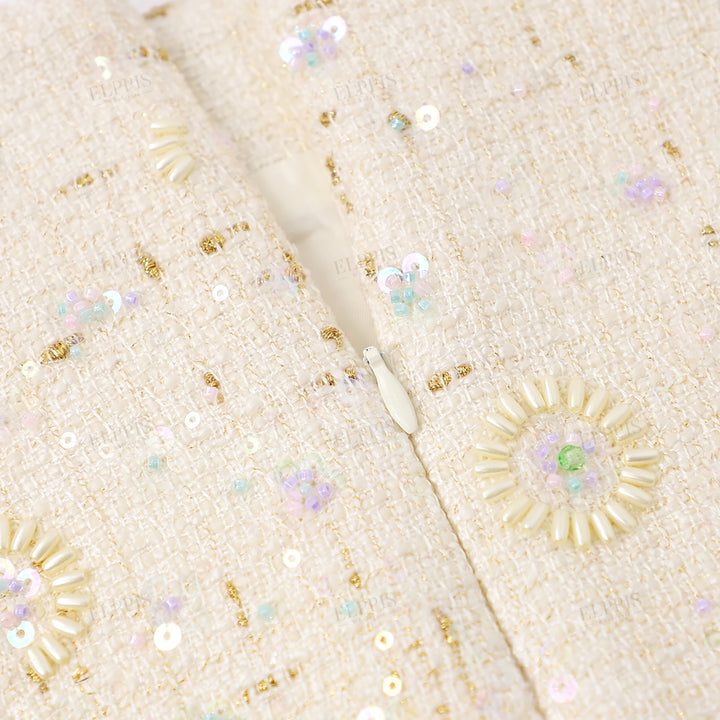 Heavy Embroidery Beaded Boucle Pearl-Detail French Tweed-Style Midi Skirt