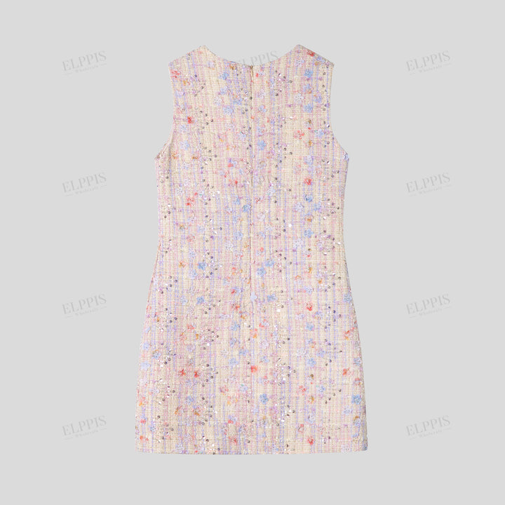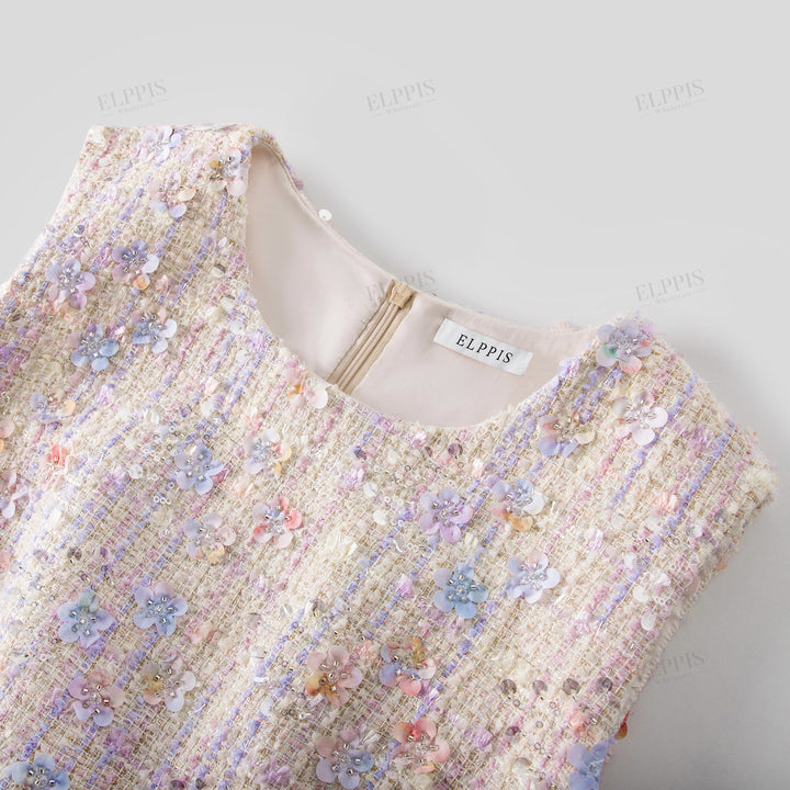 Round Neck Sleeveless Appliqué Beaded Midi Dress